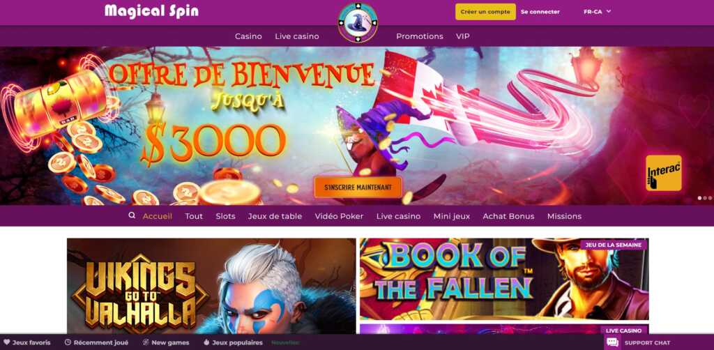 - Magical Spin : 100% jusqu’à 1 000€ + 50 tours sur votre premier dépôt.