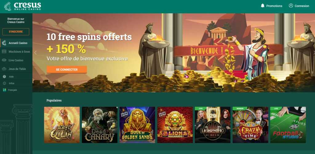 - Cresus Casino : 150% jusqu’à 300€ sur le premier dépôt + 10 tours sans dépôt.