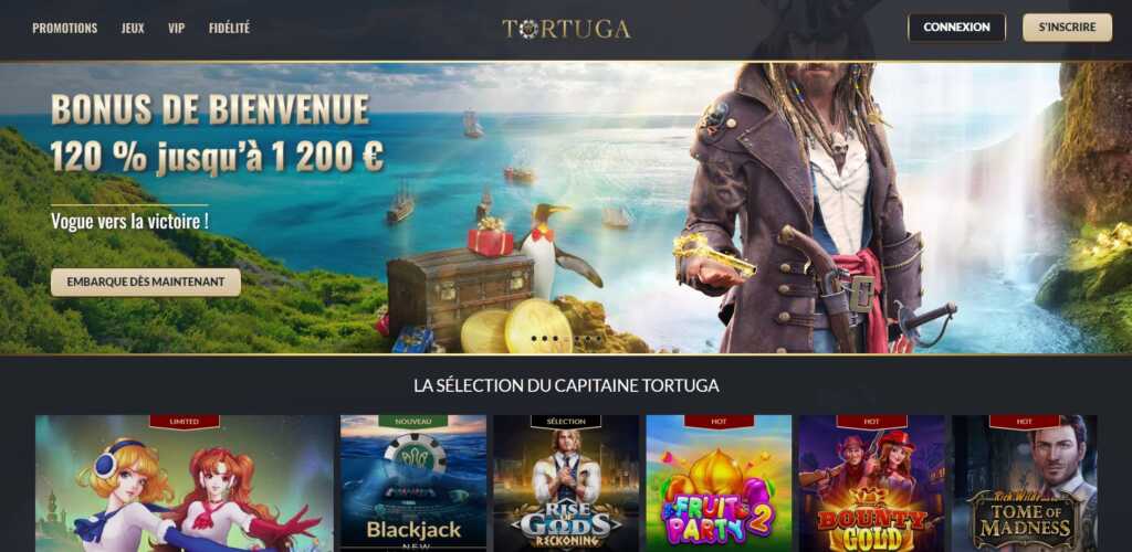 - Tortuga Casino : 120% jusqu’à 1200€ sur votre premier dépôt.