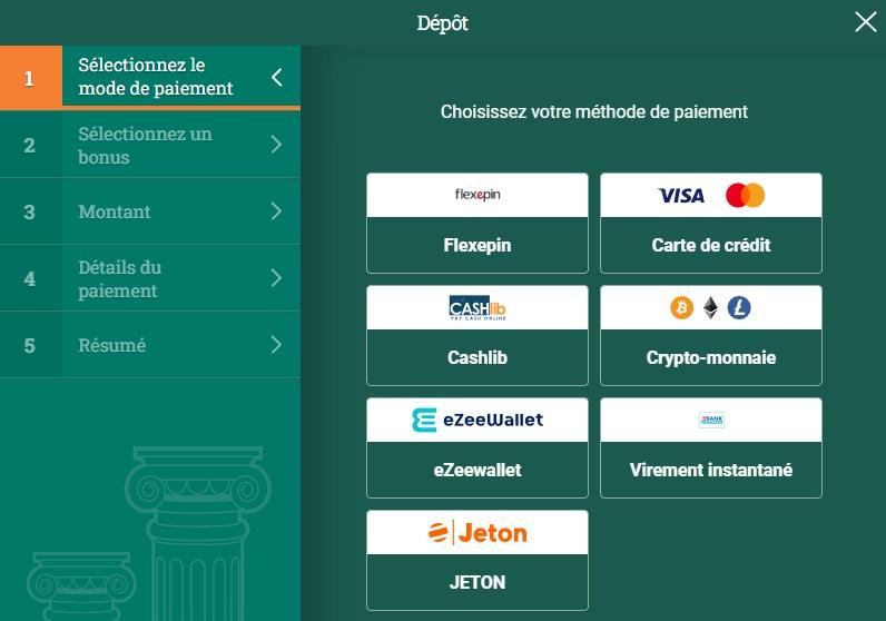 Crésus propose des moyens de paiement ultra-sécurisés. Vous pouvez déposer de l’argent via cartes bancaires (MasterCard ou VISA) ou utiliser des e-wallets pour ce faire (eZeewallet ou Cashlib). La plateforme donne aussi la possibilité de déposer des cryptomonnaies, comme le Bitcoin et l’Ethereum.