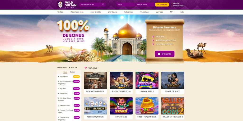 - Wild Sultan : 100% jusqu’à 500€ + 20 tours sur votre premier dépôt.