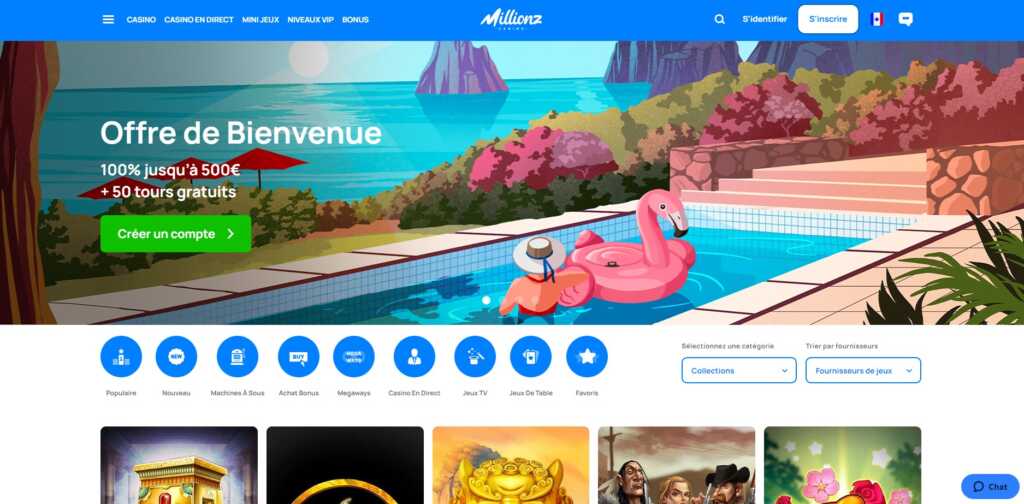 - Millionz : 100% jusqu’à 500€ + 50 tours sur votre premier dépôt.